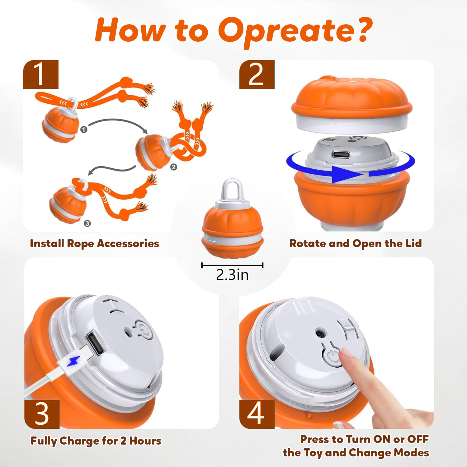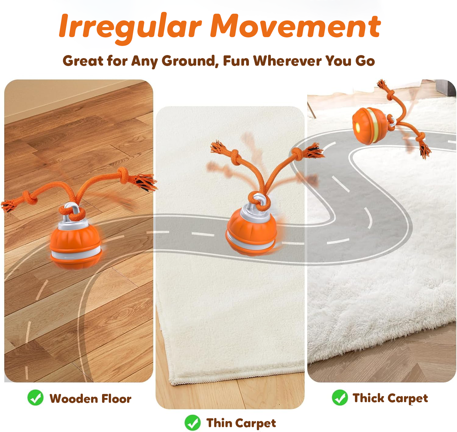 - Self-Rolling Smart Ball – A motorized, unpredictable roller that darts and spins to keep your pup engaged in exciting chase play!